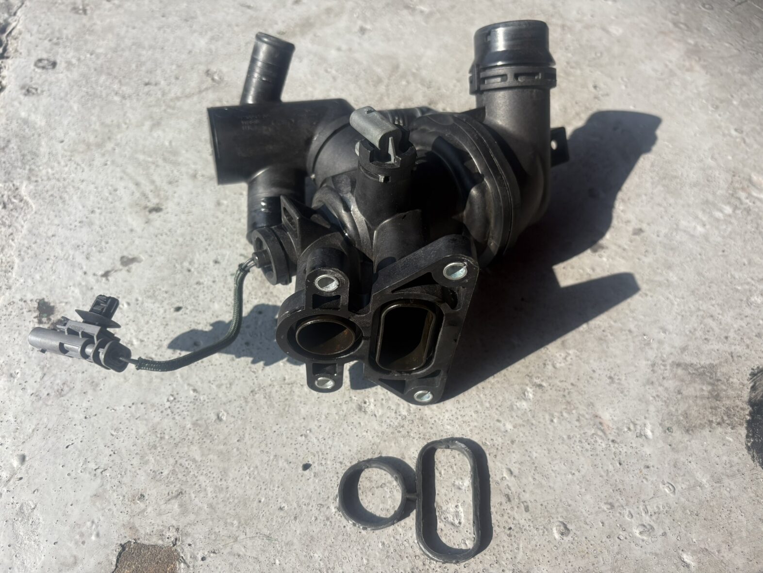 点検の結果、サーモスタット(サーモケース)から冷却水が漏れている状態が確認できました。